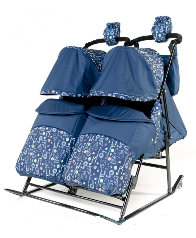 У нас санки друг за другом детки сидят, с толкателем, очень легко едут. Я думаю вариант вторых санок самый удобный, но с ручкой толкателем, мои шилопопы иногда слпзть пытаются на ходу. В интернете видела санки где детки рядом сидят и тоже есть чехлы на ножках.