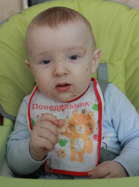 Двойняшки до 1 годаМатвей сегодня поставил рекорд по размазыванию еды,