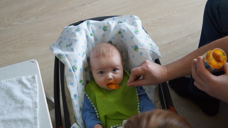 Из прикорма едим овощи: любим кабачок, обожаем тыкву (но мне кажется, что с нее у нас более плотный стул), третий день едим морковку. Тоже нравится. Брокколи и цветную капустку с ревом отказались есть.