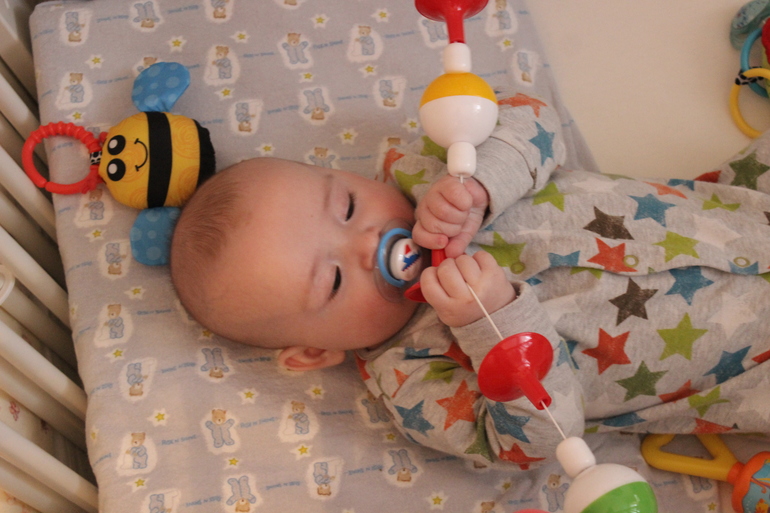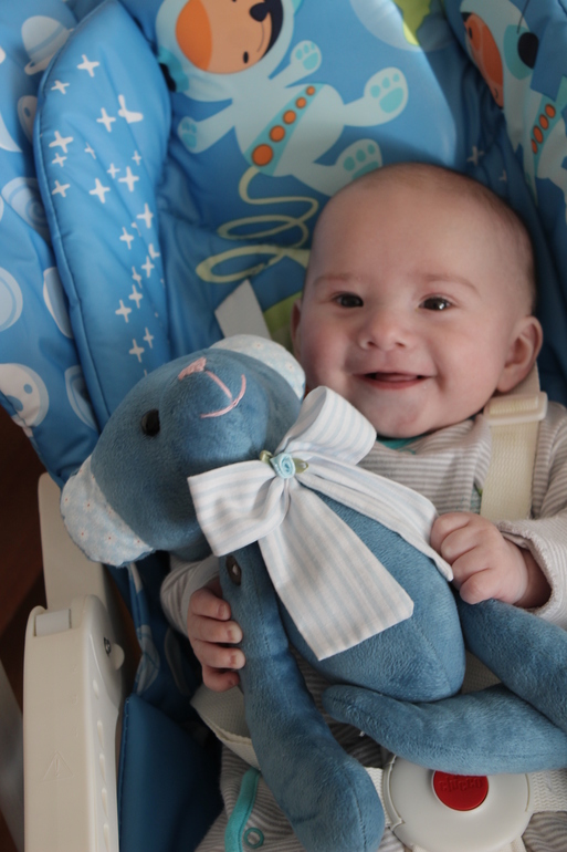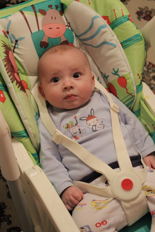 Я, если честно, до сих пор не могу их запомнить)))) Левка с игрушкой мягкой в стульчике или это Рома?