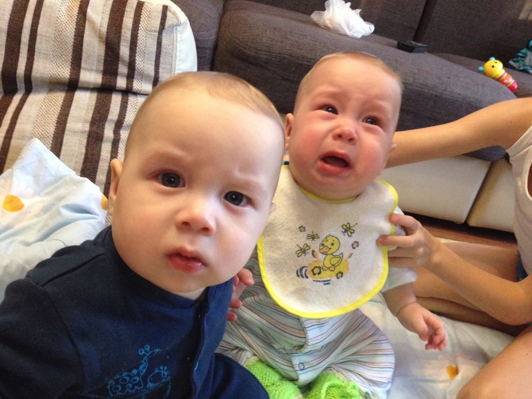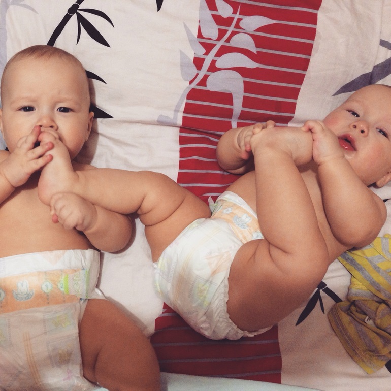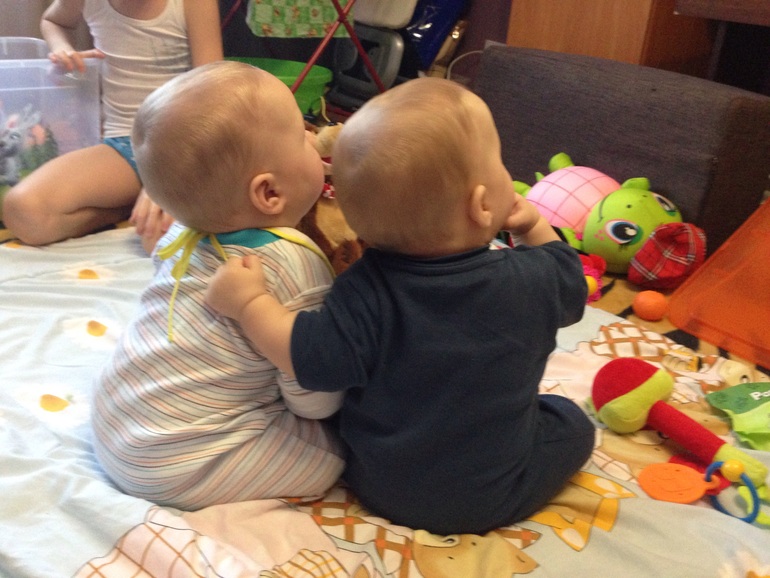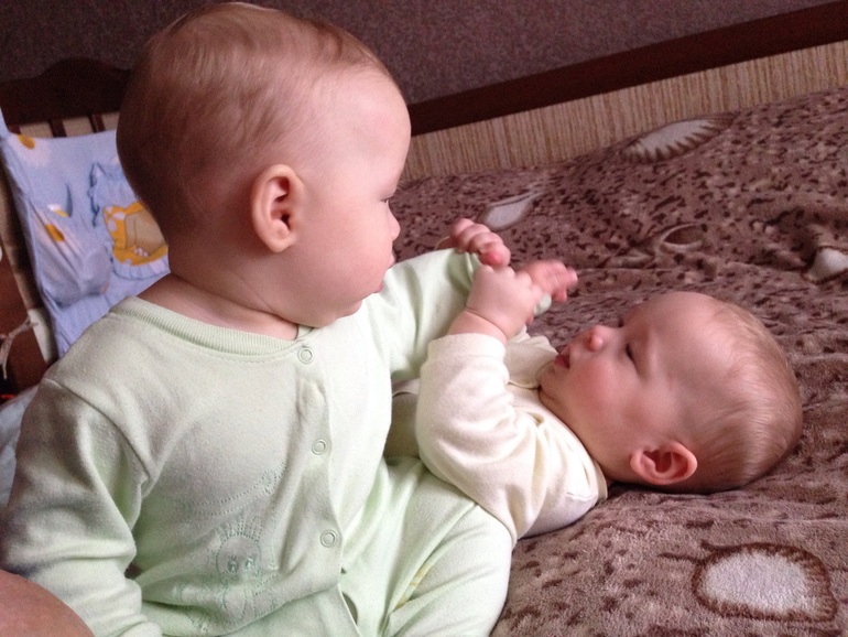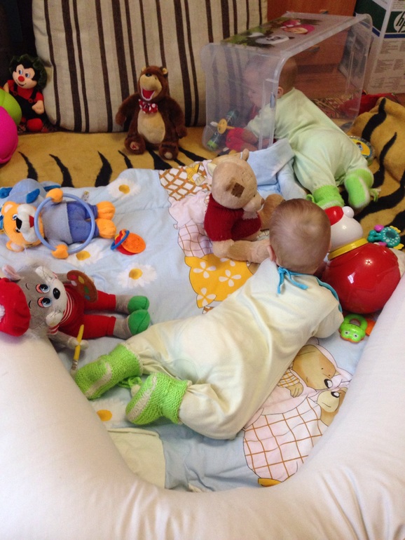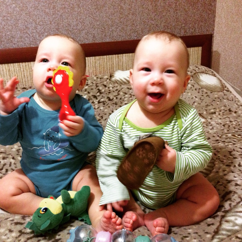 Двойняшки до 1 годаДошли руки написать таки пост. 16.02.15 нам Максу и Дане исполнилось 7 месяцев. начну с того, что мы болеем... Хотя кто его знает, одни сопли, кашель не понятно, то есть, то нет, температурил один день Макс , у него то и вылез левый нижний зубик. Ночи были бессонными до 16 числа:))) сейчас засыпают в 9, просыпаются когда три, когда два раза, иногда кто то из них и один раз, но кто, я не могу с утра вспомнить, да и вообще я подумывала о скрытой камере, посмотреть, что я делаю ночью, ведь утром я ничего не помню, странно.