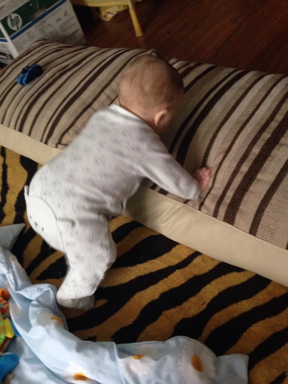 Макс уже ползает, не профессионально, но ползает :) садится, встает, опираясь на все что попадется и хохочет. Отбирает все игрухи, которые увидит у Дани. Даник же начинает психовать. Он пока не умеет садиться сам, тем более вставать. Он переворачивается, встает на четвереньки и раскачивается, сидит сам уже с прямой спиной. Не пойму, почему такая разница в развитии. К педиатру завтра. Так до сих пор не поставили прививки...у нас более менее вырисовался режим: