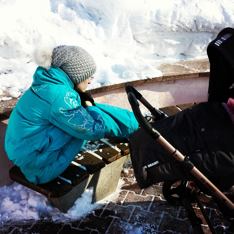 В выходные выезжаем гулять в те места города, где почищен снег, т.к. с нашим БТРом не везде и пройдешь. В этом году у нас уйма этого снега. Жду когда растает и буду выходить каждый день.