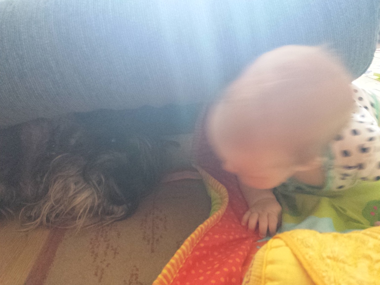 Они молодцы, ттт, если бы не погода, то дни проходят нормально, они играются, развиваются и лезут куда не надо, даже пес прячется под диваном