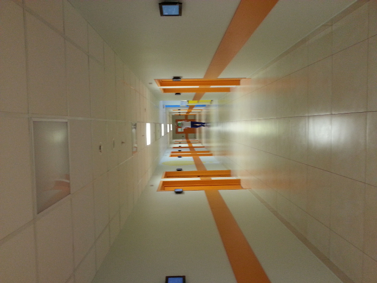 Палат много, я даже не считала сколько. Но вот на фото коридор - это только наше крыло. Палаты с двух сторон. Второе крыло покороче, но двойное. Палаты одно и двухместные (на двух детей). Одноместные (не в курсе - есть ли они бесплатные или все платные) разного уровня комфорта. У меня самая дешевая, в соседней висит огромная плазма - это палата подороже. Есть даже двухкомнатная палата - ее не видела ☺ - стоит под 9 тыщ в сутки.