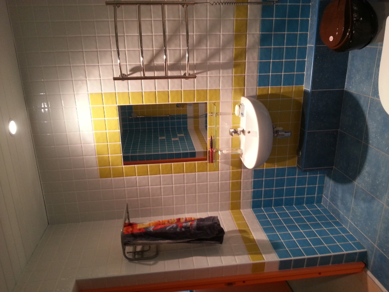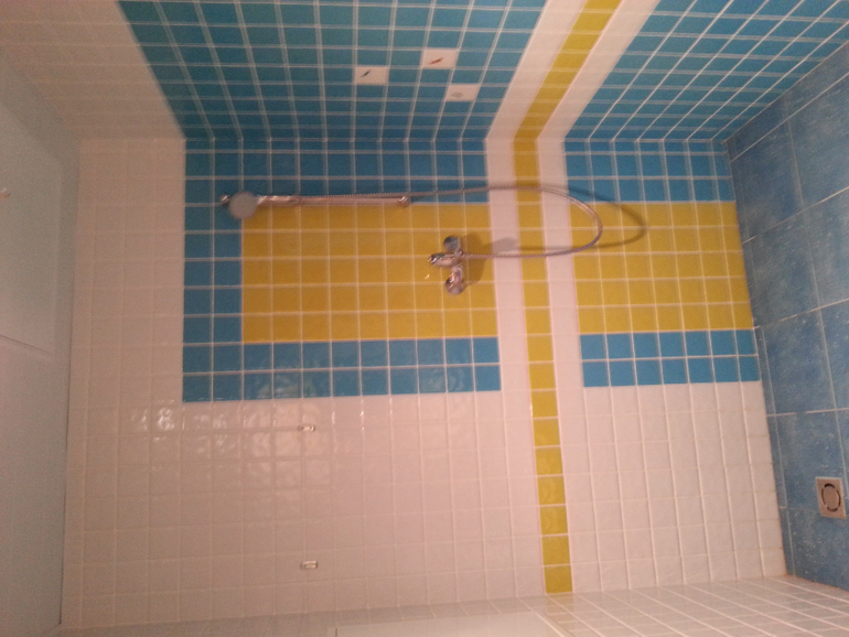 Зданию нет еще и года, здесь очень чисто, удобно и клево. Правда, я так и не поняла тайну душа без поддона или хотя бы занавески: даже при попытке подмыть Ульянку я вся мокрая с ног до головы, т.к. кран хлещет в пол и брызги разлетаются абсолютно по всей ванной. Сегодня мужа попросила таз принести - проблема решилась, но почему душ без поддона/занавески - я так и не поняла. Сама моюсь обнявшись с душем и стоя спиной к стенке.