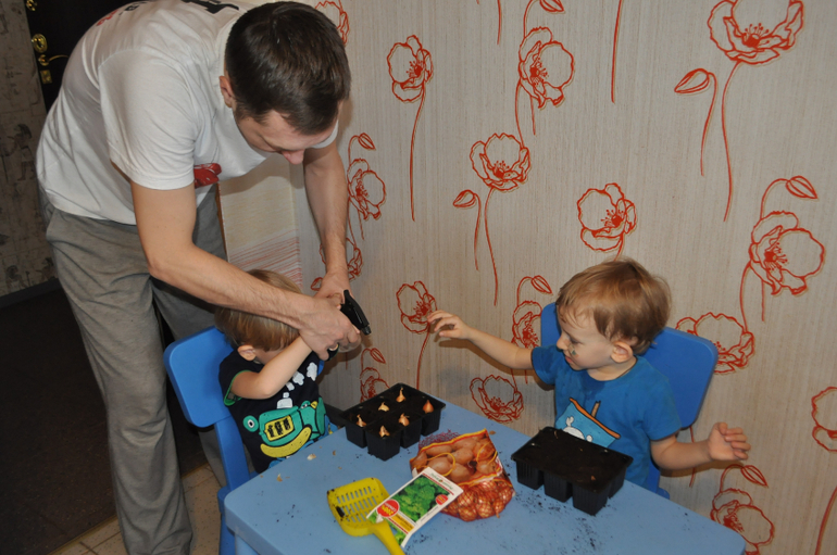 Чтобы не скучать мы решили показать детям как растет лук и петрушка, для этого я купила все необходимое и начали творить и вытворять ( детям удовольствие, маме уборка!)