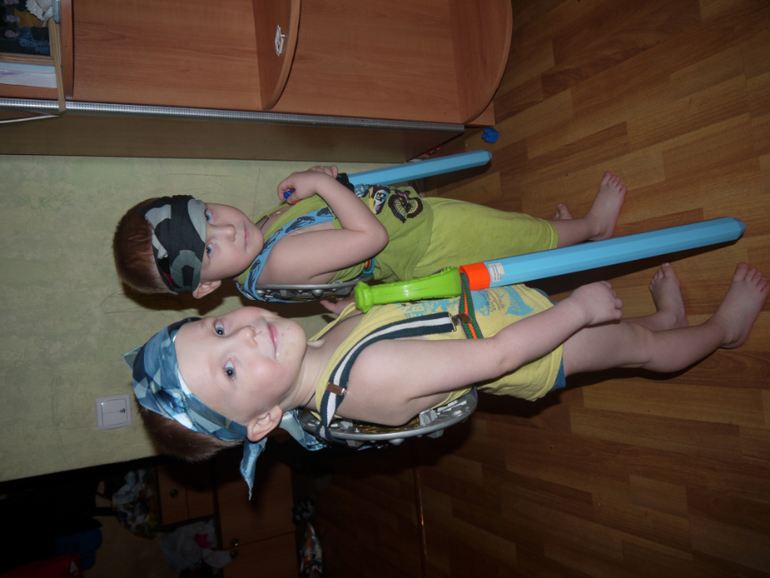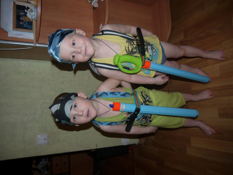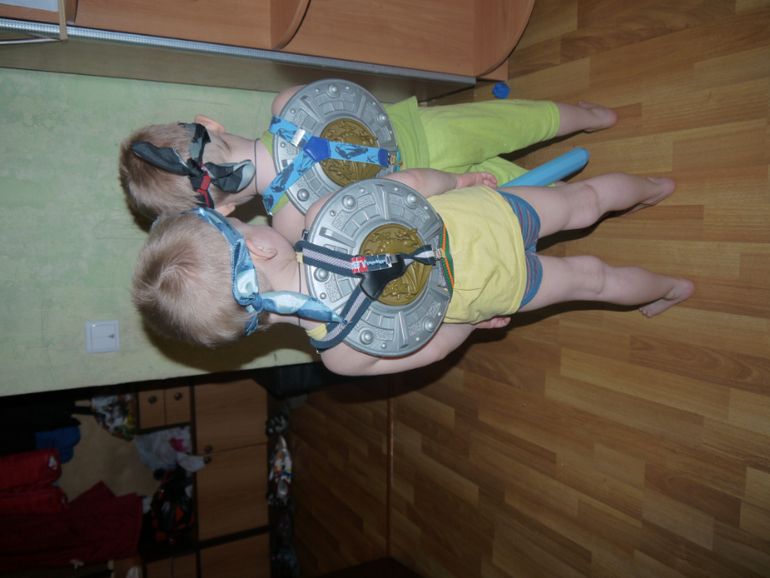 Двойняшки с 3-х летМои помешаны сейчас на ниндзя черепашках. вот накануне вечерком свояла им костюмчики из подручных средств. Прошу прощения комп давно болеет вирусняком не переворачивает фотки