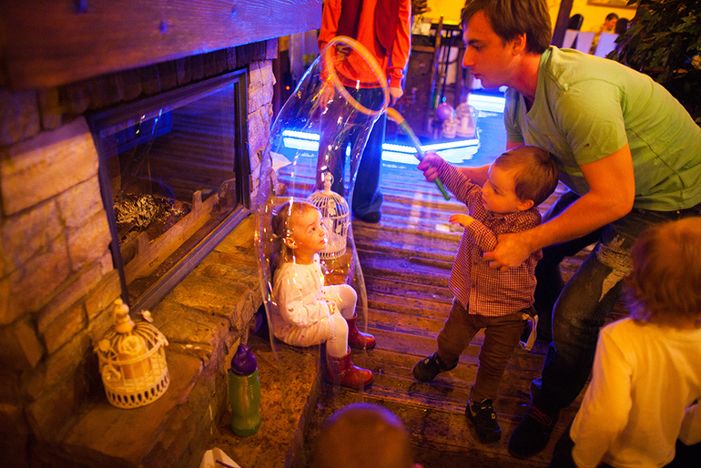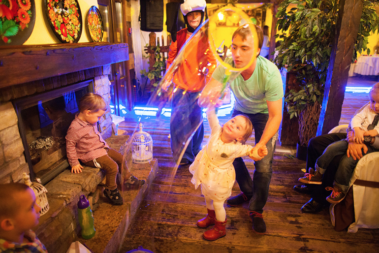 у моей мамы был юбилей, отмечали в ресторане и было много народу, много детей и мои самые младшие! до этого мои дети никогда не общались с аниматорами и все походы в ресторан были для меня совсем не отдыхом, постоянно приходилось их веселить, бегать за ними, а спокойно сидеть они могли только с мультиками, да и то все время пытались драться или убегать! поэтому я не очень-то настраивалась на праздник и отдых, но дети меня приятно удивили!)