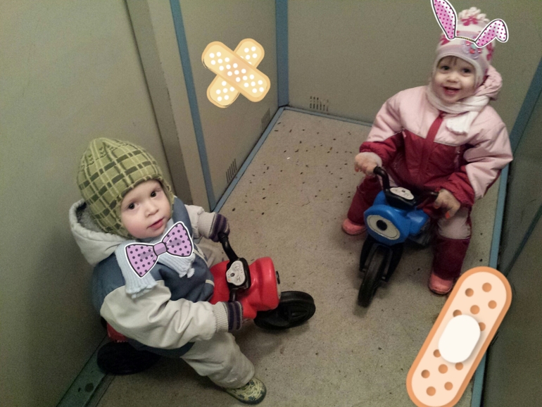 Классные фотки, детки прелестны! Бросились в глаза обои и лифт, все такое родное))) у нас такой же дом П44Т с муниципальным ремонтом)))) На кухне мы заменили, а вот в гостинной остались по сей день)