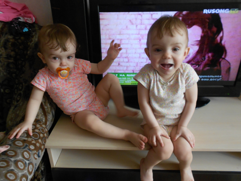 Двойняшки от 1 года до 3-хНедавно нам исполнился 1г и 4 мес.Большииие)))Лерочка 12кг и 85 см. роста,Кристинка 10.8кг и 84см.Девчонки очень повзрослели и очень многому научились!К умению разбрасывать вещи и игрушки из ящиков,добавилось умение вскрывать фиксаторы на дверях,так что "Здравствуй помойка и кастрюльки!".Еще мы умеем почти без рук залезать на подоконник)Пипец товарищи!Теперь мой день-это круговорот детей в квартире))) Пока снимаю одну с окна,вторая на кухне уже в помойке роется