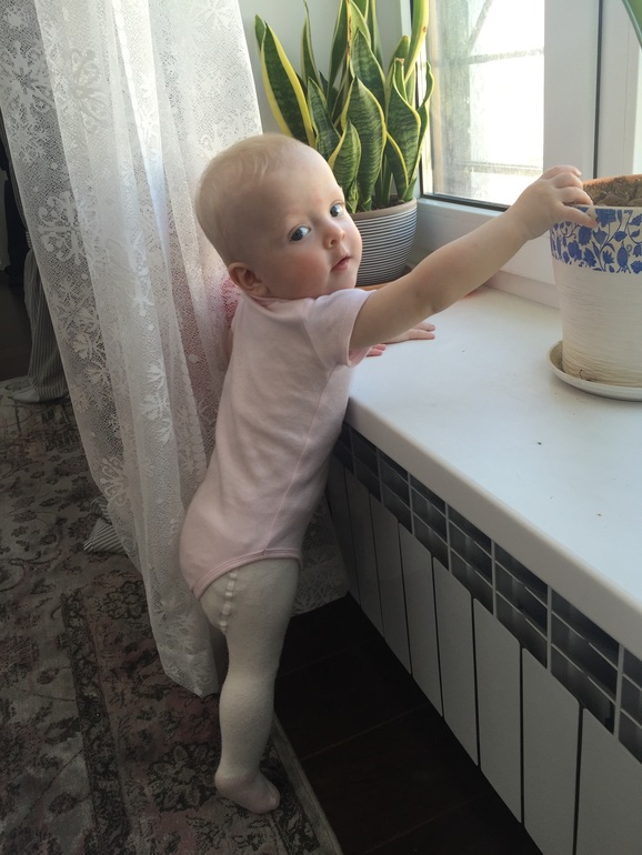и прилюдно распиз..... в общем ничего не делать. Они поползли и практически одновременно стали вставать...... И теперь я ловлю их то на дверце холодильника, но у тумбочки, то у духовки.... Встали, а сами спуститься не могут - из сцыкливых лисят и орууууут. А проигнорить нельзя - плитка везде. Их зона игрищ устелена, но они хотят расширять пространства.