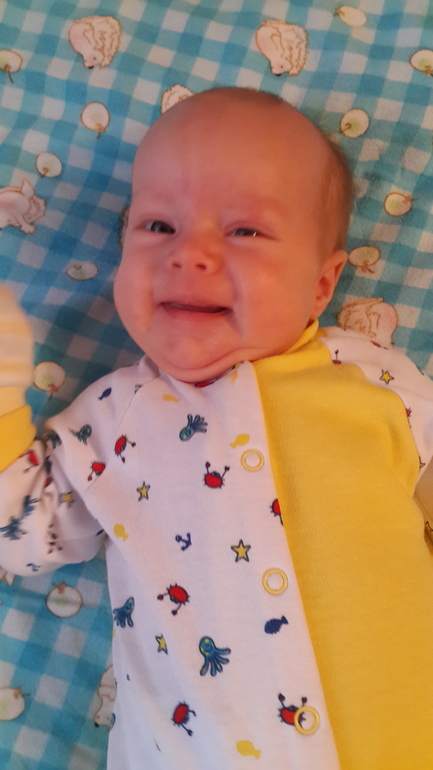Тимурик начал очень много гулить, разговаривает на своем Агу, Агы, Ага - это так смешно, даже ругается иногда. много улыбается, лежать не любит, хорошо держит голову и пытается приподниматься лежа на спине, на руках лежа его не поносишь - только стоя и от себя лицом - ему нужно все везде смотреть! Переболел отитом в 1.5 месяца, очень жалко его было(
