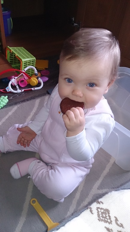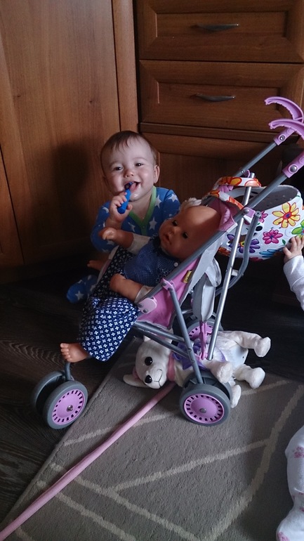 А вот Лера... После 4 сеансов у остеопата,она у меня как спринтер поползла,села и даже встала. Но! Ножки на столько слабенькие,что не держат ее. Встает редко,шатается и пытается скорее сесть обратно. Когда я ей меняю памперс,она разводит ноги настолько сильно в стороны,что мне страшно даже становится,у нее реально получается шпагат и ноги как буд то не ее. Ей удобно в позе лягушки,она может ноги чуть ли не узлом завязать и ее это не сколько не напрягает. Остеопат говорит,все в норме,поправим, и все будет хорошо. Следующий сеанс после майских праздников назначил,а мне уже не терпится его снова вызвать. Я не могу смотреть на ее ноги,особенно когда она выдает акробатические номера!