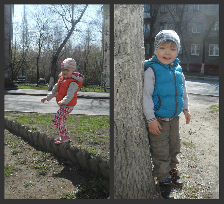Прогулки с малышамиНа улице +20 и мы разделись!!!!!!!!!! Как я уже устала от зимней одежки! Всех с теплом, солнышком и ВЕСНОЙ!!! А там и лето