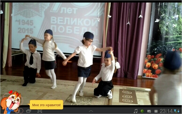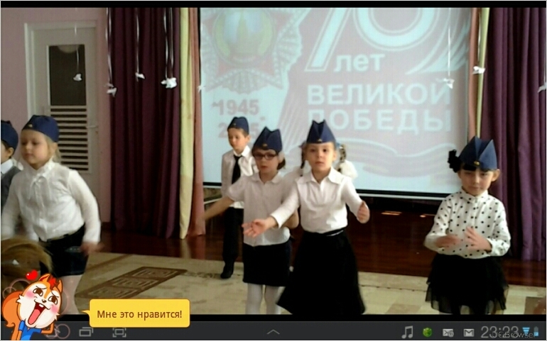 Вместе с детьми и для детейВот и прогремел очередной утренник, реально со слезами на глазах, так было, не побоюсь этого слова, КРУТО! Был и ветеран и бабушка девочки, которая в войну была ребенком, детки читали стихи, пели катюшу, моряка, был тж эстрадный певец, исполнял под минусовку, все очень шикарно, танцевали вальс, в конце дарили ветерану цветы, а деткам настоящие пилртки и гелевые шарики, все в восторге, воспитателтница у нас затейница)))