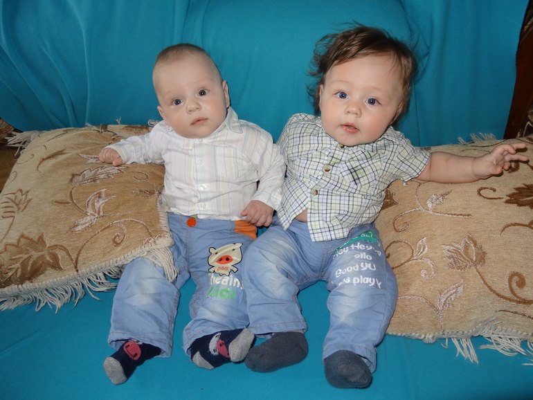 10 июня нам исполнилось 7 месяцев. У педиатра были в 6, на тот момент Андрюша 9400 и 71 см, Игорек 8000 и 67 см (родились весом 2600 и 1900).