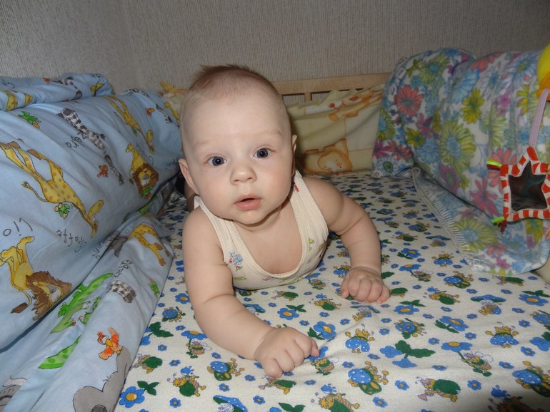 Игорь - одно слово - юла!!! На месте не сидит, все время надо куда то бежать (ногами мамы, папы, бабушки, дедушки и тд). 🏃 Более менее ползает на четвереньках, начал за неделю до Андрюши, переставляет руки, но пока не очень быстро. Сам также не сидит, не встает, только немного на диване у подлокотников. Сидит с поддержкой, может немного и сам, но тоже заваливается. Очень громкоголосый и требовательный товарищ, что не по нему, в крик! Но в то же время очень чувствительный с самого рождения (не переносил грязного подгузника ни минуты, поднимал шум, в отличии от брата, требователен к еде, воде и т д. ). Говорит много звуков, причем с выражением😀, поет☺