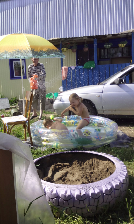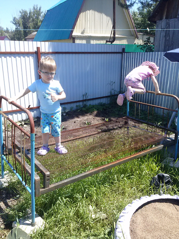 Класс))) как же нам бассейна не хватает))) воду еще не провели ни скважины ни колодца))) а на такой кровати тут в выходные напрыгались ездили в гости))) у нас еще нет толком ягод))) завидую )))