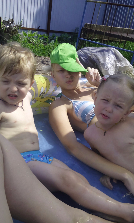 Батууут!!Прям вспомнила свое детство,могли до одури прыгать на таком батуте)))На первой фотке бандиты такие))))))Это вы на даче отдыхаете или в деревне?Сколько радости у пузатиков!!Молодцы,Ксюш!!!У нас жарища вторую неделю(у вас тоже,наверное),все выхи тупо в бассейне просидели)))Домой заходить в духоту даже не хочется((Не проветривается вообще,дети голышом спят)))И у нас ягода пошла,вчера целую чеплашку слопали