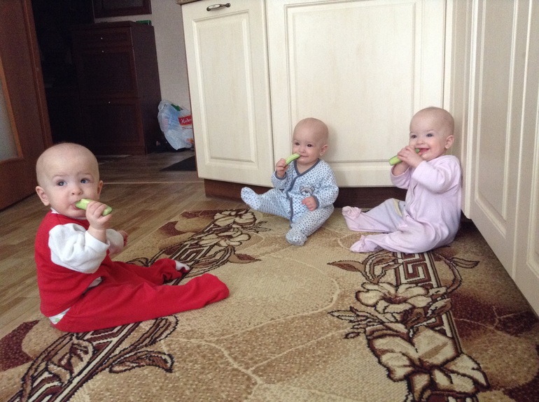 Красивые, хорошенькие, лапочки, куколки!!! Здоровья вам всем,терпения мамочке!!! С нетерпение жду кода напишите о родах и первых месяцах очень интересно!!! Тут с двумя не всегда справляюсь а вы с тремя вы для меня героиня!!!