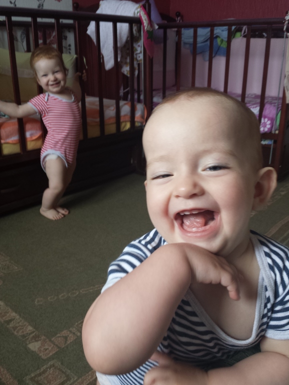 Тишина, иду искать тишину, смотрю мой юный Шерлок в виде Полины уже ковыряет на полу мусоринку и видя меня тут же ее в рот и начинает удерать смеясь....ааа. Надеюсь, скоро эти исследования закончатся. Наташка меньше к этом проявляет интерес.