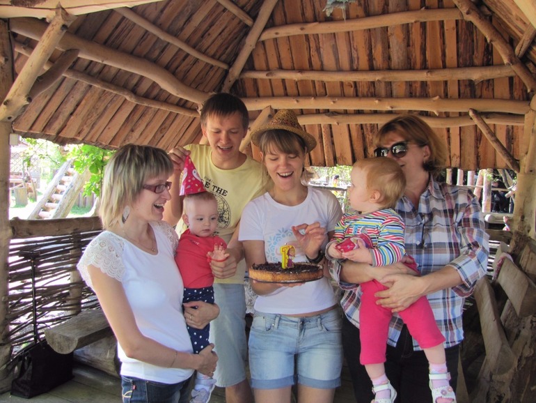 Годик справили на природе с шашлыком и смородиновым пирогом. Па наш в командировке, были на фотосете и празднике без него.