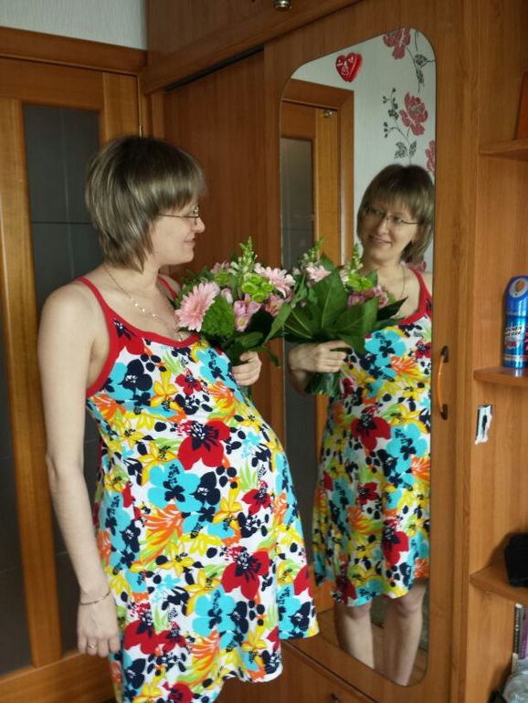 За неделю до родов. Родились мы на 38 неделе...плюс 25 кг....уф...