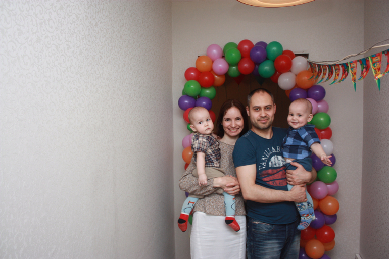 9го апреля наши поздравления, украшенная квартира, тортик, но так как это был четверг отмечали мы его 12 апреля (воскресения) Все украшения делала сама (арки из шаров, паровозики с фото, цифра) Гостей было много)))) Думала может кто откажется, но нет))) пришли все и с детьми 5 пар взрослых и дети)) Готовить стол помогала мама, торт сделала сама. Много шаров, подарков. В общем дети вели себя хорошо, поспали даже часик в разгар торжества. Я и все остались довольны. Из подарков: качели (катаются с удовольствием, не боятся), автокресла, машинки каталки, игрушки для развития, мыльные пузыри, деньги, и по мелочи игрушки, их теперь на год хватит, по одной все еще достаю.
