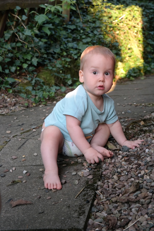 Еще, в год и четыре месяца поехали на месяц на дачу. Как же там было хорошо! Дети окрепли, накупались, набегались - надеюсь на укрепление иммунитета.