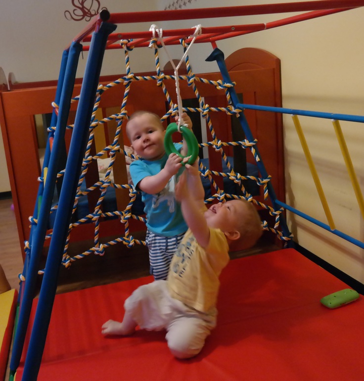 Главное достижение последних месяцев: дети научились нормально ходить, и даже бегать (с переменным успехом). Вообще, в год и два месяца у детей резко проснулся интерес к вертикальному передвижению. Заинтересовал спорткомплекс (до этого просто стоял на проходе), стали лазить на кровати-кресла "просто так" (до этого тоже лазили, но не из любви к искусству, а за чем-то - за игрушкой или забытым телефоном, например).