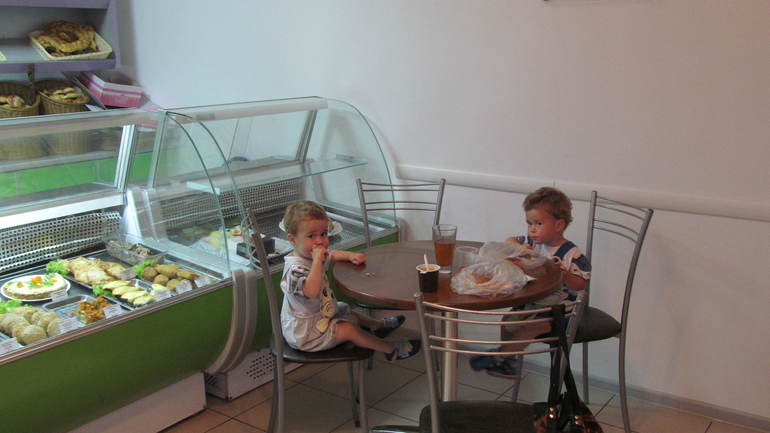 На обратном пути заскочили в нашу уже полюбившуюся кулинарию, покушали пирожков печёных с творогом и компотиком,