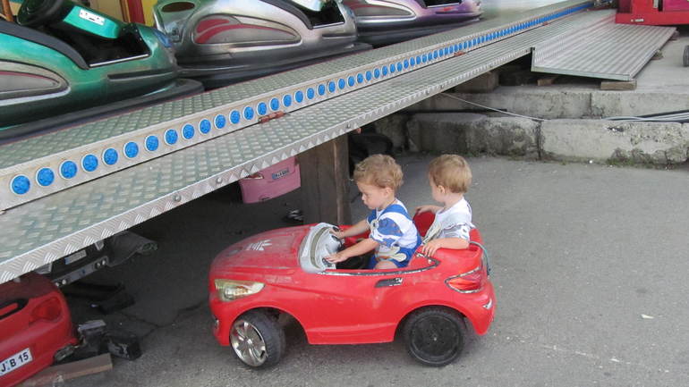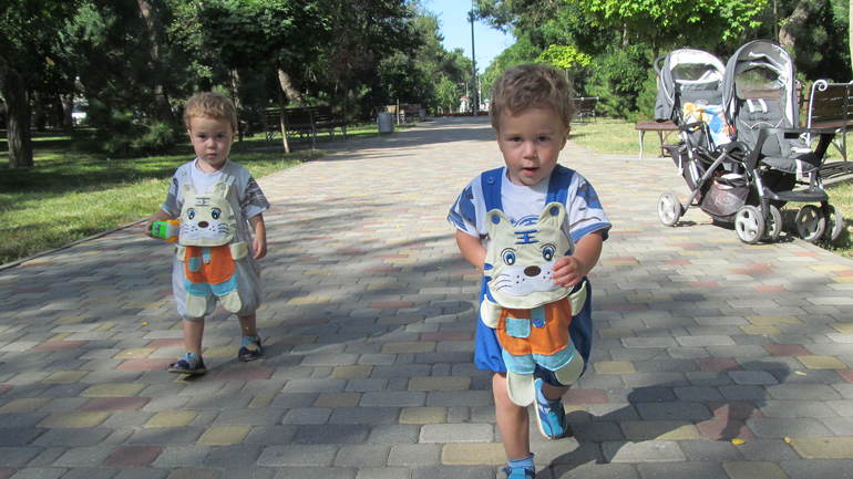 Я никуда не могу. Будучи выпущенными из коляски, разбегаются. Да и в коляске Костик сидит недолго, потом делает попытку побега.