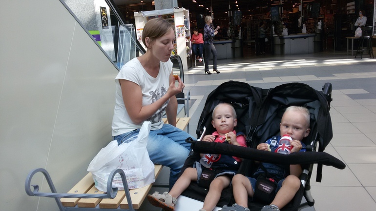 Прогулки с малышами...спросил проходящий мимо дядька,увидев нас, сидящих и жующих после беготни по парку,на скамеечке в тц."Вот так прям,не смотрите в кадр!Вам же самой интересно потом будет!)))".Я согласилась... Неее,больше так не буду))))
