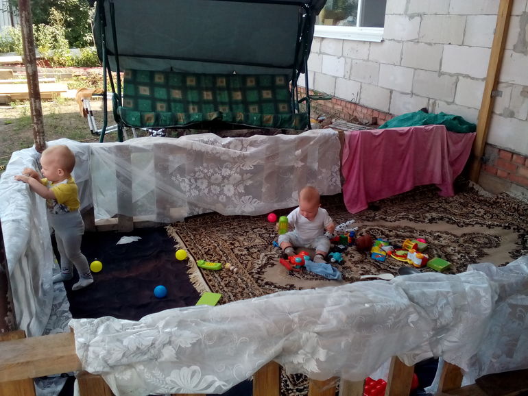 Вот нам папа манеж на улице смострячил там и топаем.![]()