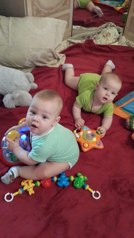Двойняшки до 1 года7 месяцев! Седьмой месяц - месяц превращения человека лежачего в человека сидячего и стоячего и даже ходячего)