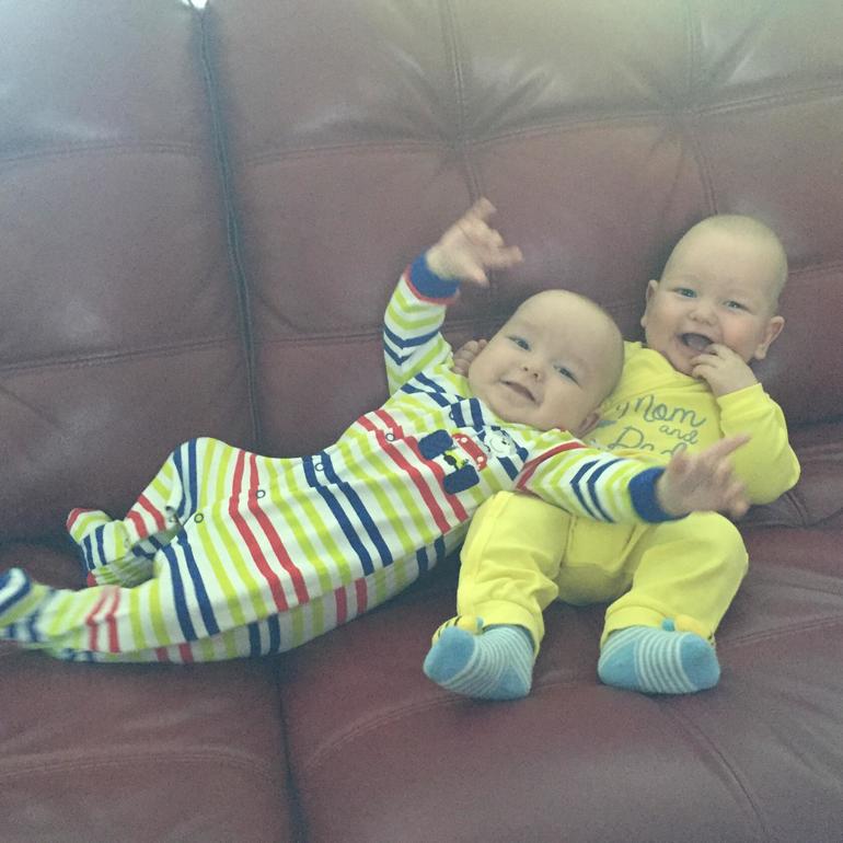 Так быстро пролетело время. А ангелочки стали уже такими большими: Костик 69,5 см 8565кг, Арсюшка 69 см 7965кг. Малыши во всю растут, кувыркаются, хахочат, болтают, даже слоги слышны типа: "МОМ, МО, ДИ , ГА, БУ")))