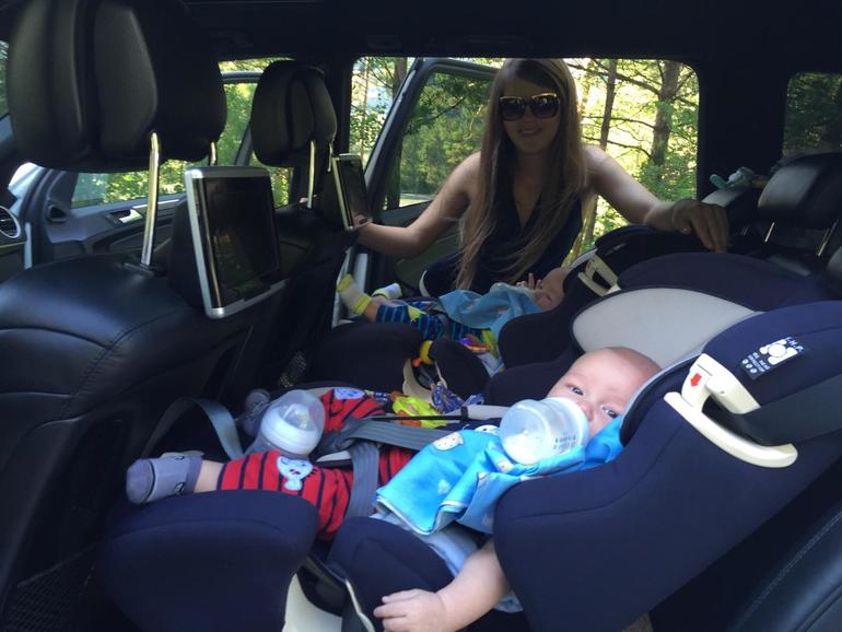 А вот приехали и начались капризы!!! 2 часа просто орали покатом... думали поедим обратно... Но как-то само собой малыши уснули и проснулись с новым настроением