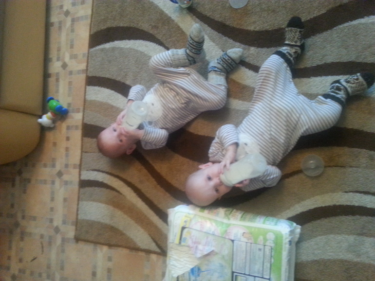 Двойняшки до 1 года Вот так мы теперь едим))