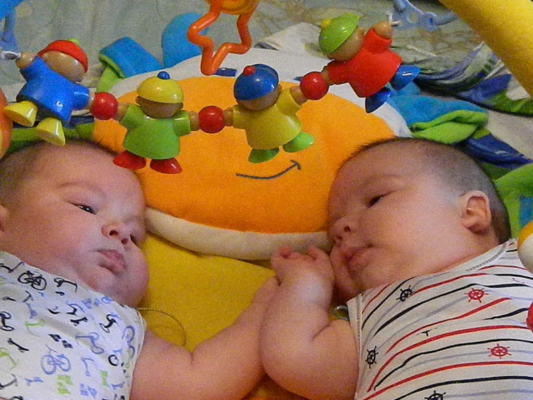 Здравствуйте! А родились мальчики с каким весом? У меня 4,5 детям, сын 7700 весит, так я думала, он не переворачивается ещё оттого, что толстенький и ленивый ( а ваши во сколько стали переворачиваться? П.С. старшая сестра красиииивая!