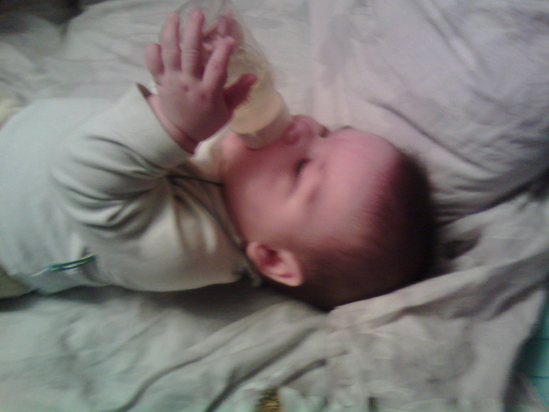 (Вот честно...не считаю ребят толстыми...пухлячками-да)))Спокойно переворачиваемся на живот..пытаемся держать бутылочку...