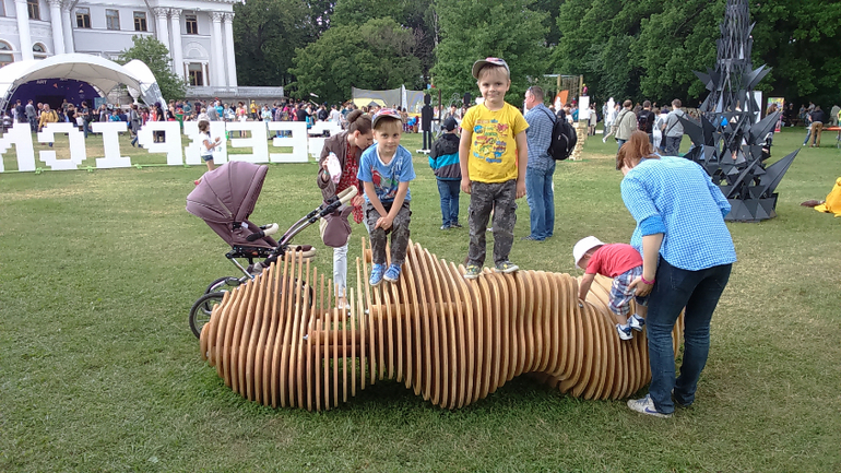 Скамейка тоже очень необычная.