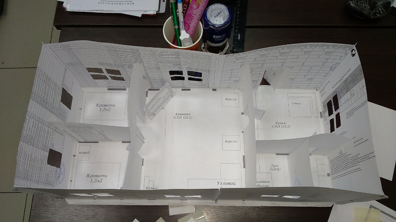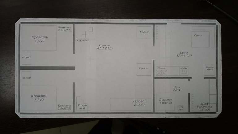Когда мы померили нашу обвязку, у меня появилась идея, надо было придумать план дома. Сначала спальни, гостинная и большая кухня. А так как я сидела придумывала на работе, то мне и подсказали, что ванна должна быть, деткам ножки ночью помыть и спать, а то по улице пока пробежишь снова грязный. И вот теперь у меня вот такой план весит на стенке. По фен Шую весит, чтобы сбылось. И к милому пришла с конфеткаи и шоколадками, говорю "Я тебя балую и ты меня побалуй, исполни мечту, сделай такой дом" :)))