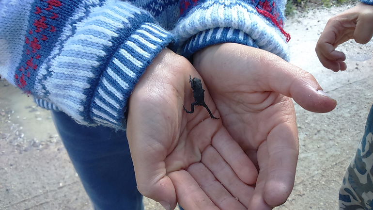 Детки развлекались как могли, и с чем могли, постоянно находят каких-то животных. То головастиков, то вот лягушек, потом кузнечиков.