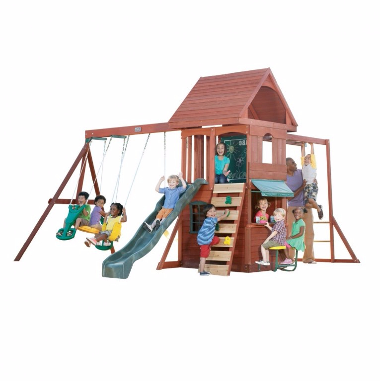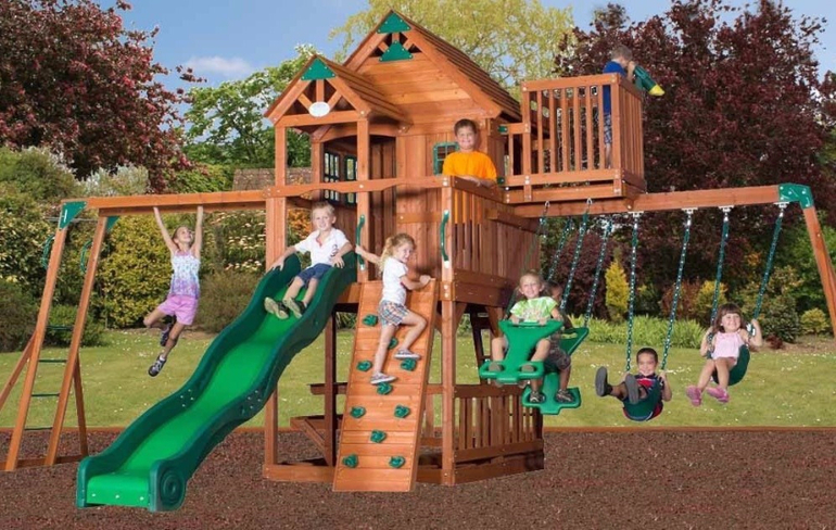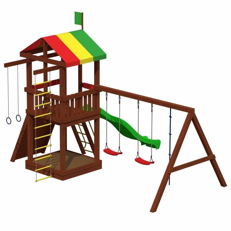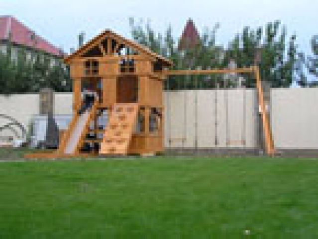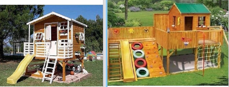 Только первый этаж побольше, чтобы можно там посидеть, залезть наверх, оттуда большая горка вниз, качельки рядом приделать, канат, лазилки, все что любят детки.