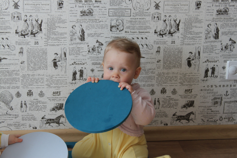 6) ползать с одинаковыми (!) предметами -двумя молоточками, формочками, стаканчиками, чайными пакетами, главное, парными!
