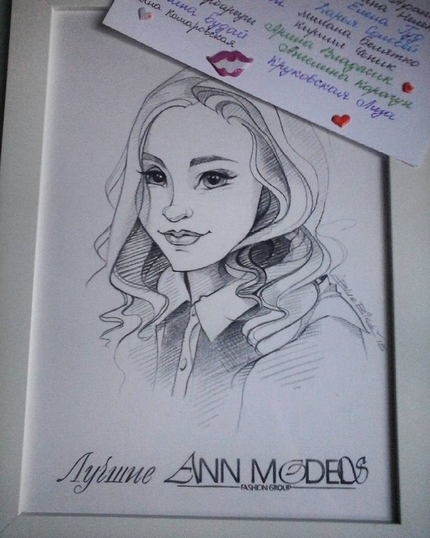 Заказали мультяшные портреты.Рисовали нам их по фото.Вышло очень красиво.(думаю малых потом своих заказать)