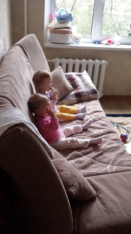Жень, а мне казалось, что на тебя похожа Натик. А оказывается Поля! Классные фотки! А девочки молодцы- и сидят так смирно на диване и кушать учатся!- вы от нас далеко оторвались. Мои по диванам и кроватям скачут- я с ума с ними сойду. Ушла в туалет сегодня- занавеску сорвали вместе с карнизом! Ужос...