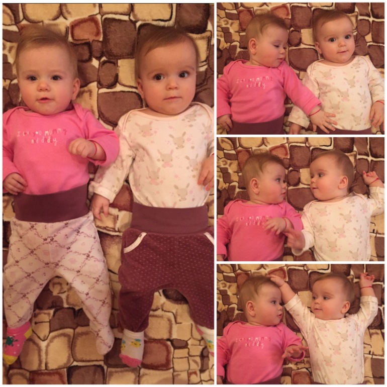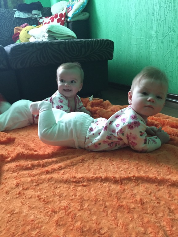 Двойняшки до 1 годаНу что-же, время летит незаметно и мелкими но уверенными шагами мы добрались до отметки в 7 месяцев. Для начала цифры:Ева- 7740 и 68,5 см, Эмилия - 7050 и 67 см. Этот месяц был достаточно насыщен событиями, во первых мы зделали второй раз прививки и все прошло относительно неплохо, небольшая температура пару дней но дети при этом были спокойными. Во вторых мы прошли второй курс массажа. И в третьих наша лентяйка Милочка перевернулась! Причём за неделю научилась переворачиваться во все стороны и теперь делает это не хуже сестры, которая научилась переворачиваться еще 2 месяца тому назад на живот и через месяц еще на спинку. Теперь они катаются по всему полу как сардельки, переодически закатываясь друг на друга. Сидеть и ползать мы пока только учимся. Но я перестала париться на эту тему и поняла что все равно рано или позно они всему научаться, самое главное что они здоровые а каждый ребенок развивается в ритме. И сравнивать я тоже наконец таки их перестала по этой же причине. :) В эмоциональонлм плане детки развиты одинакова. Обе смеются в голос, откликается на свои имена, узнают маму с папой и с осторожностью относятся к чужим, некоторых даже побаиваются. За этот месяц ввела в рацион только овощи: кабачок, цветную капусту, броколли, тыкву и морковь. Попоробывала гречку но они пока плохо ее едят. только если разведу смесью и добавлю морклвное пюре могут кушать. а