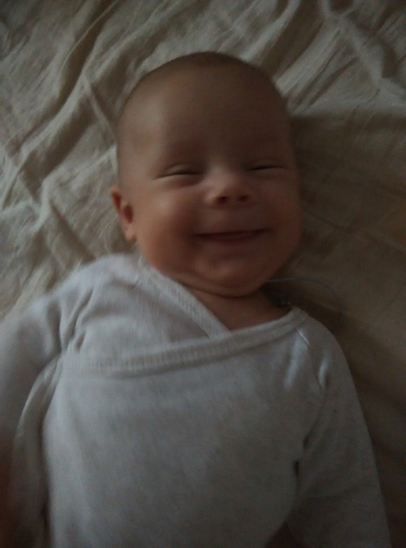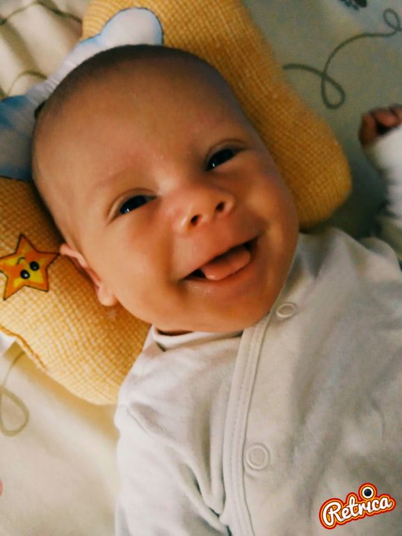 Это наши первые улыбочки в 1,5 месяца. А сейчас мы уже большие парни, хохочем в голос, болтаем что-то на своём. Павлушка у нас обояшка, всем улыбается, отвечает на вопросы на своём французском. Витюшка застенчивый мужичок, любит кушать, улыбается в основном маме и папе. Умелок у нас не очень много: держим головку, погремушки, переворачиваемся с живота на спину. Нормально ли пока не переворачиваться со спины на живот и не хватать игрушки?